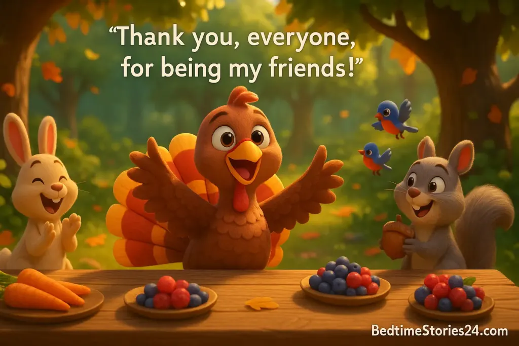 And from that day, Toby was known as The Turkey Who Said Thank You—and the forest felt warmer and happier every Thanksgiving.