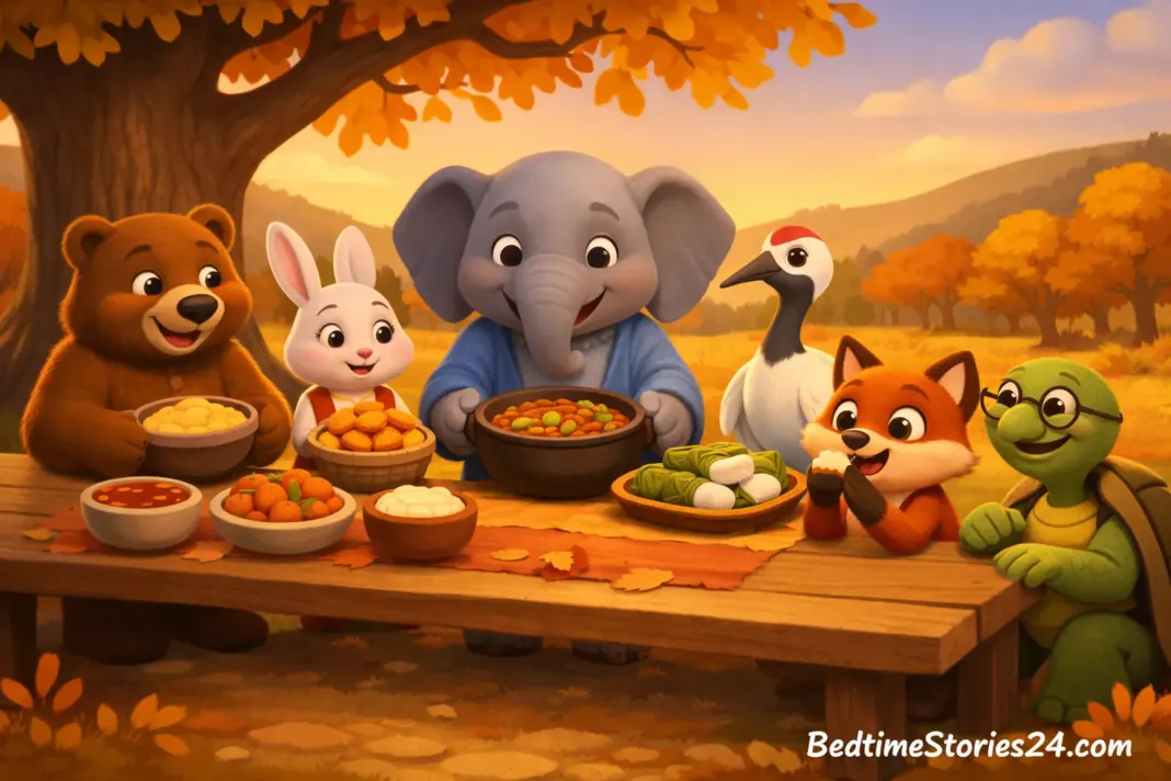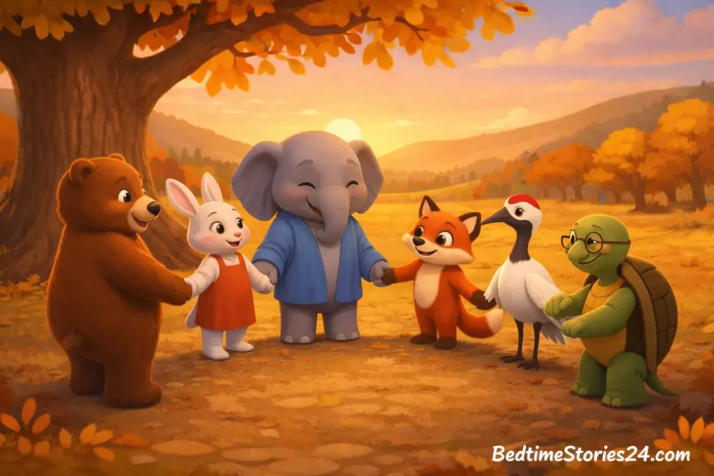 As the sun set, the animals held hands, wings, and paws around the table. They realized that gratitude was not just about food—it was about kindness, respect, and being together.