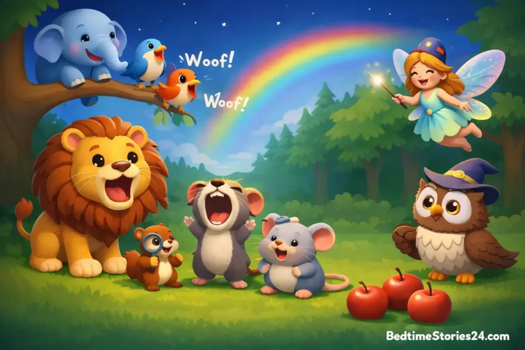 From that day on, at the end of every month, the animals would make upside-down sounds for five whole minutes—because a little laughter made the forest an even happier place.