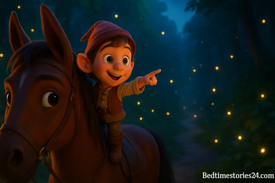 One morning, the farmer prepared to drive a wagon of logs to the forest. Thumbling pleaded to join the trip, insisting he would behave. Because the boy could not walk alongside the tall wheels, the farmer set him gently in the horse’s ear. From there, Thumbling shouted cheerful commands, guiding the animal as though he were a seasoned driver. Travelers they passed stared in confusion, hearing a crisp voice yet seeing no child in sight. The farmer simply laughed and continued on.